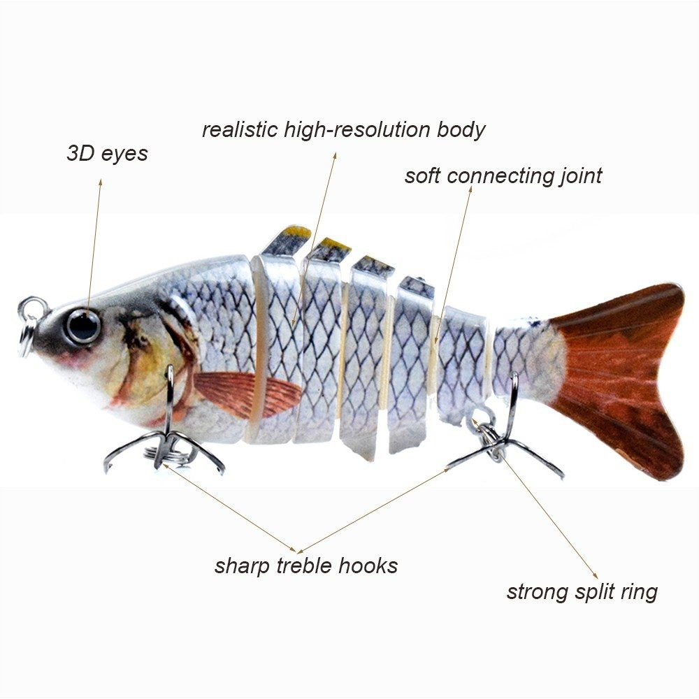 Realistic body and 3D eyes make it more flexible and lifelike to attract fish to bite.