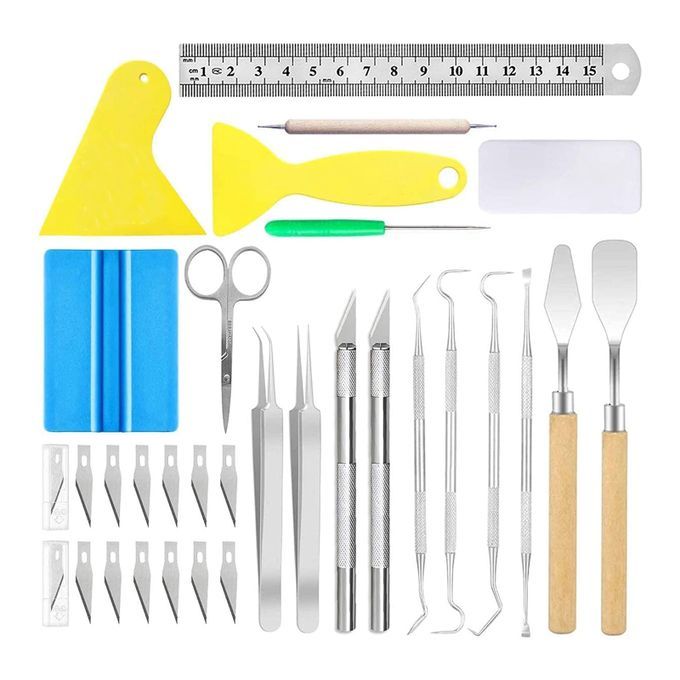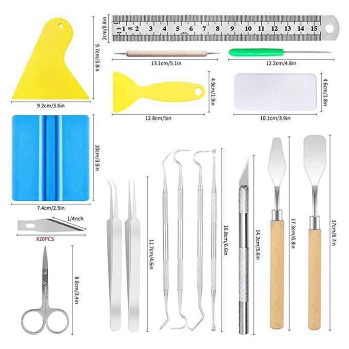 MULTI-USE CRAFT VINYL TOOL SETJTIEO crafts tools set perfect for paper craft , adhesive vinyl , sewing , silhouette ,lettering , cameo and basic craft works. It can be used as debris remover, bee sting remover, scrapbooking, carving, detection, embellishment, embroidery, cardstock, craft selection, rhinestone inlay, etc.The uses is endless Beyond your imagination!