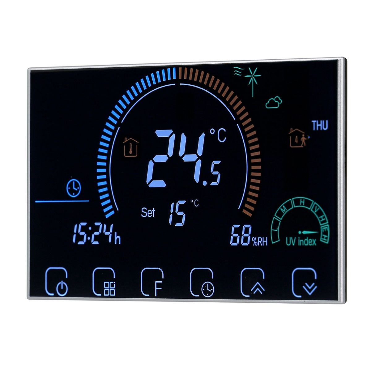 Weekly programmable and 5+1+1 six periods programmable to maximize comfort and economy, very flexible.