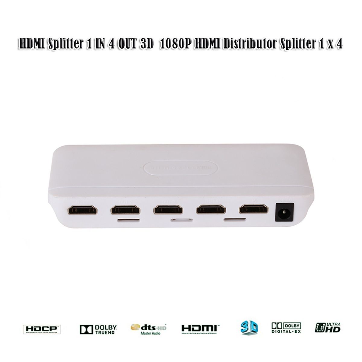 HDMI Splitter 1 IN 4 OUT 3D 1080P HDMI Distributor Splitter 1 x 4 Features: Type: HDMI HD Splitter One to Four Application: Output the device data source with HDMI interface, such as PC computer, set-top box, DVD player, notebook, PS3, high-definition TV, etc.HDMI device Product features: Fashionable design, exquisite and compact, easy to carry. Advantages: with signal buffering and amplification capabilities, support for high-definition video, high-quality, clear, HDTV resolution up to 1080p, support for HDMI 1.3, support 3D, support CEC, fully compatible with HDCP1.2Working principle: One HDMI signal input is allocated to four HDMI outputs Applicable: Aign one HDMI output device to four HDMI interface high-definition display devices. For example: the user can output the signal and connect the high-definition projector at the same time, DLP, LCD, HD TV series and other equipment HDMI resolution: 24/50/60fs/1080P/1080i/720p/576p/576i/480P/480i Features & advantages: 1. With signal buffering and amplification capabilities 2. Long-distance transmiion of more than 15 meters (extended) can be achieved through the method of series connection 3. By stacking, the number of HDMI output ports can be significantly increased 4. Support high-definition video, high-quality, clear, HDTV resolution up to 1080p 5. Easily connect to multi-channel audio receiving equipment 6. Fully support HDMI 1.3, support 3D support CEC, fully compatible with HDCP1.2 7. Quick installation and simple operation 8. The vertical pixels of the output image are up to 1080 lines, conforming to the HDMI1.3 standard, and compatible with the HDCP protocol