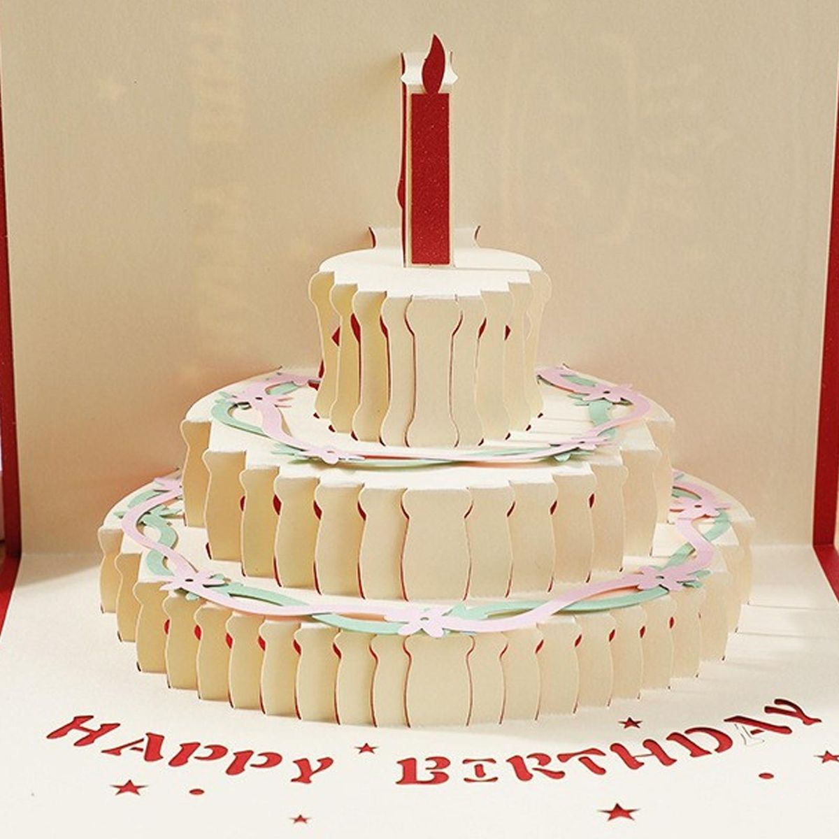 Our stunning 3d birthday cake greeting card, the perfect gift for your friends on their special day! this fold-out card features an ultra-clear graphic design that brings the cake and candle to life in a mesmerizing 3d effect. the attention to detail is impeccable, making this card sleek and attention-grabbing. whether you're celebrating a milestone or simply want to show someone you care, this card is sure to make a lasting impression. its compact size makes it easy to carry and gift, ensuring that your loved ones can enjoy the surprise wherever they go. with heartfelt birthday wishes beautifully displayed on the card, it's not just a greeting but also a thoughtful keepsake. don't settle for ordinary cards when you can give the extraordinary.