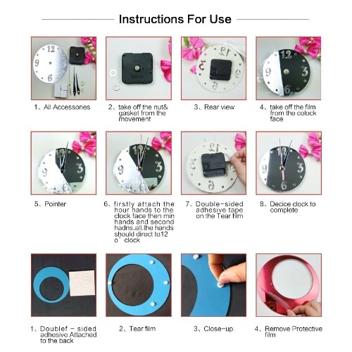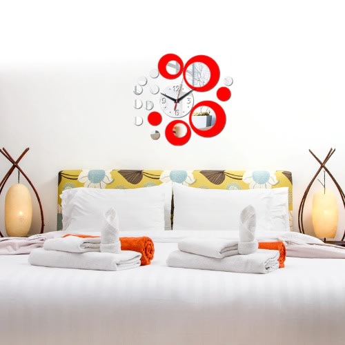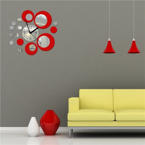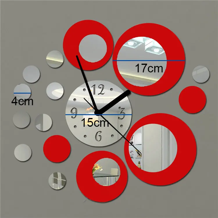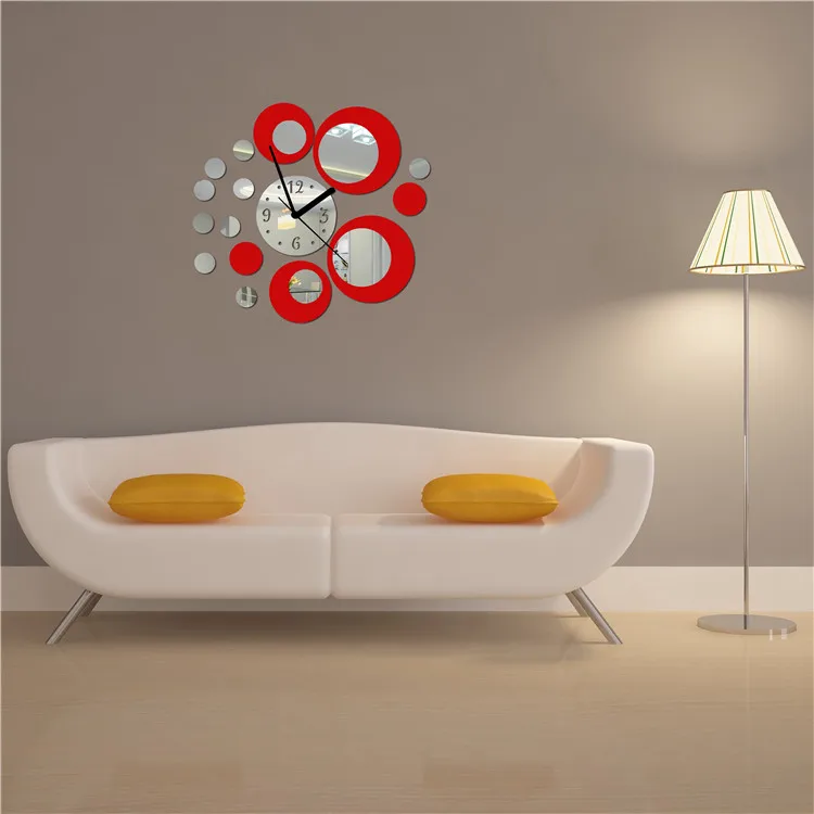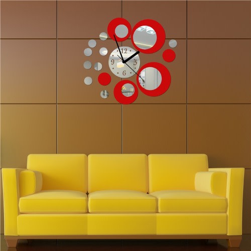 Buy 3D Crystal Studio Circle Mirror Wall Clock Wall Sticker - Red in Nigeria