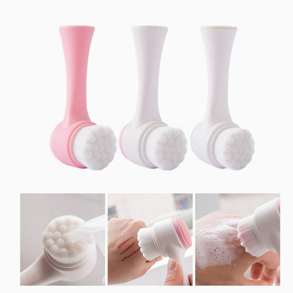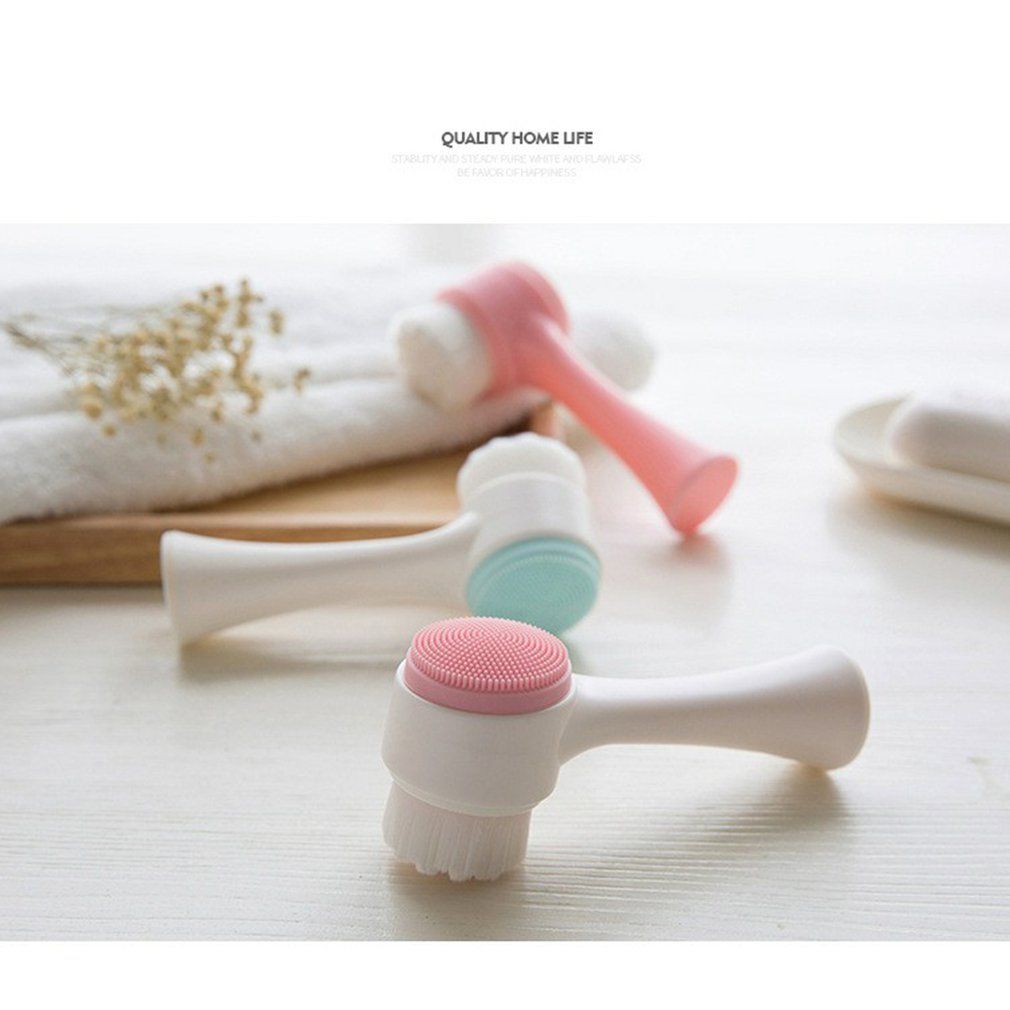 4. 2 in 1 double sided brush with handle:soft bristles on one side used for deep exfoliating and cleansing; the other side with silicone massager for massage your face; easy to hold with the handle grip and move around while cleaning your face.