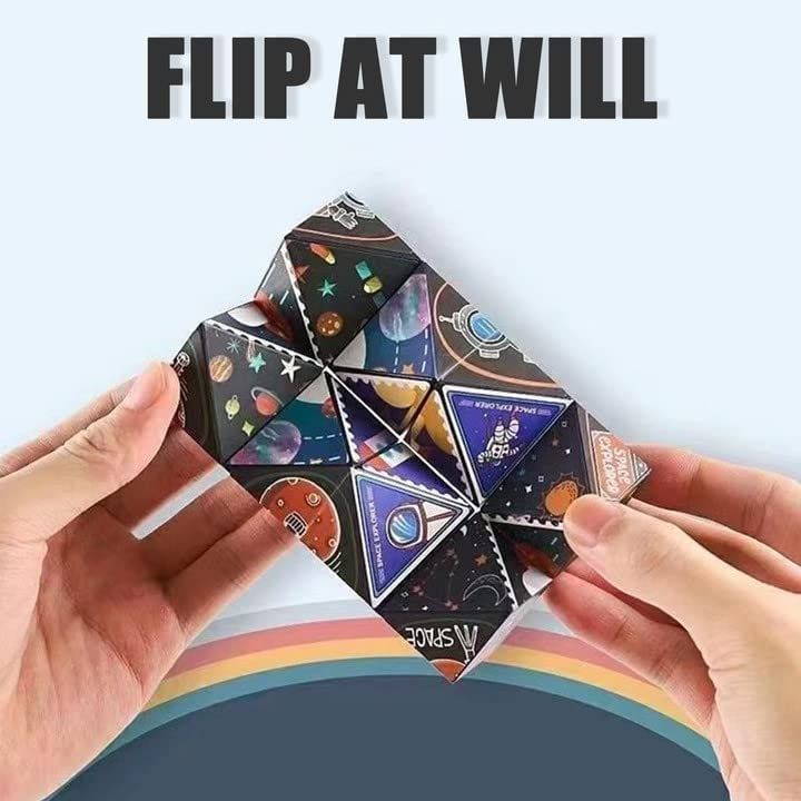 【INFINITE FLIPPING FUN】Our kaleidoscope fidget toy is made of four hinged, plastic pyramids with psychedelic, tear-resistant stickers.
