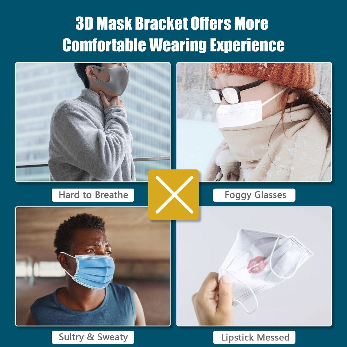 3D mask bracket provides more breathing space while wearing face mask. Made of polyethylene resin, skin-friendly and durable.