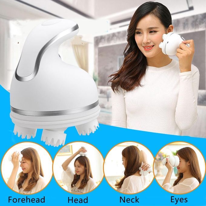 Specification: Name:3D Head Massager Model:818854 Material:Acrylonitrile Butadiene Styrene(ABS)+Silicone Voltage:5V Color:White Size:103x136mm