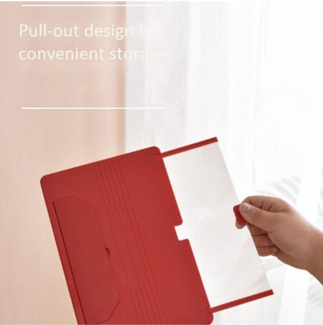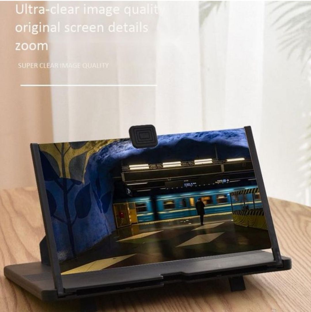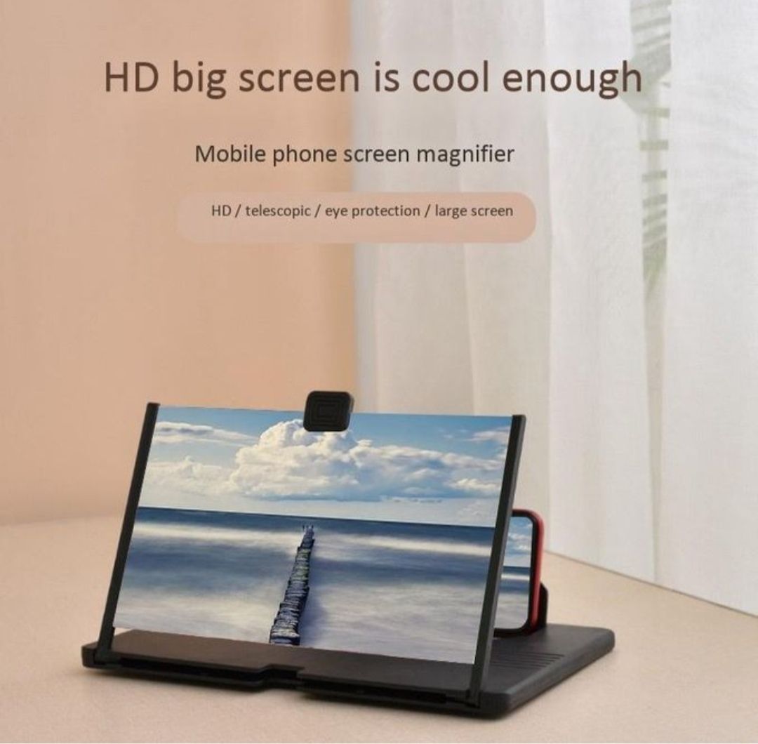 Feature:1. HD display screen: Fresnel mirror screen adopts optical HD zoom technology, which can enlarge HD by 3 to 4 times, effectively preventing radiation generated by mobile phone.2. Sliding design: stretch the silicone round button, and then the screen appears. This sliding screen mode helps to protect the screen and is more suitable for transportation.3. Simple operation: the screen amplifier doubles the screen size, so you can make the most of movies and videos on your HD smartphone. Add a Bluetooth keyboard and use it to play HD.4. High quality materials: ABS plastic and Fresnel mirror, strong and durable, even higher definition. Raise frame adjustable angle of view. Non slip silicone pad protects and stabilizes the phone.5. Excellent compatibility: whether you are for iPhone or an Android phone, the projector screen of the magnifying glass can be used with your device. 3D visual pleasure can avoid visual fatigue.