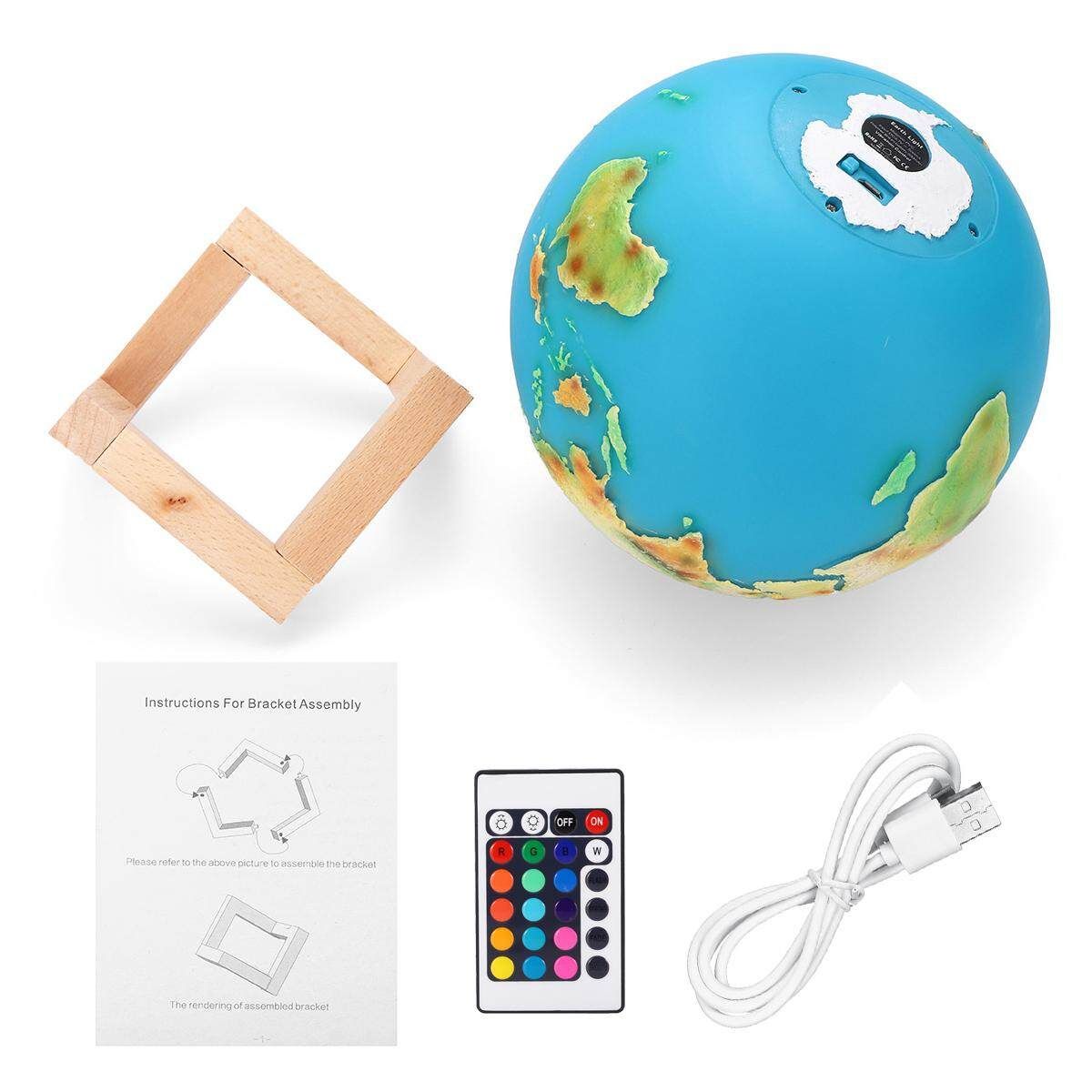1× 3D Painted Earth Night ligh 1× Wooden Mount 1× USB Charging Cable 1× English User Manual 1x Remote Control