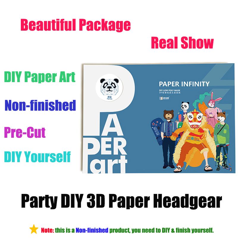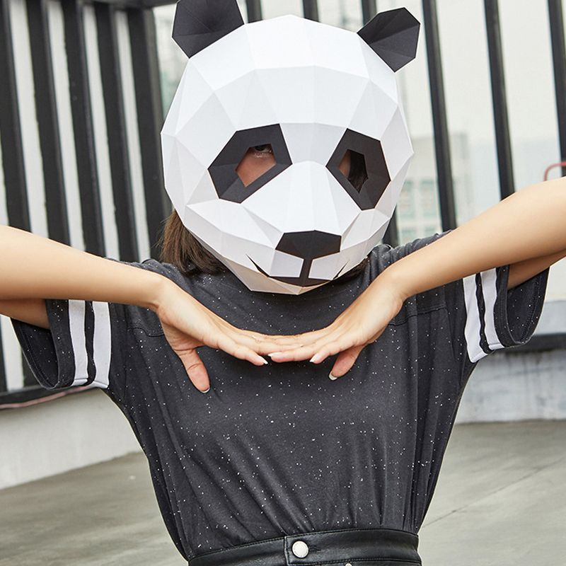 1X 3D Paper Mold Panda Head Mask Headgear Animal Model Halloween Cosplay Props Adults Kids Party Role Play Dress Up DIY Craft Masks