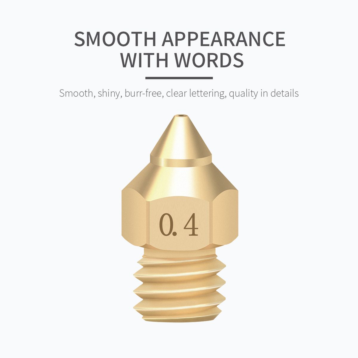 ▷ New designed TTS new point nozzle is crafted with advanced processing technology, which makes the printing model more smooth and delicate. M6 thread and 4 types of output diameter, 2 quantity combos for you to choose.