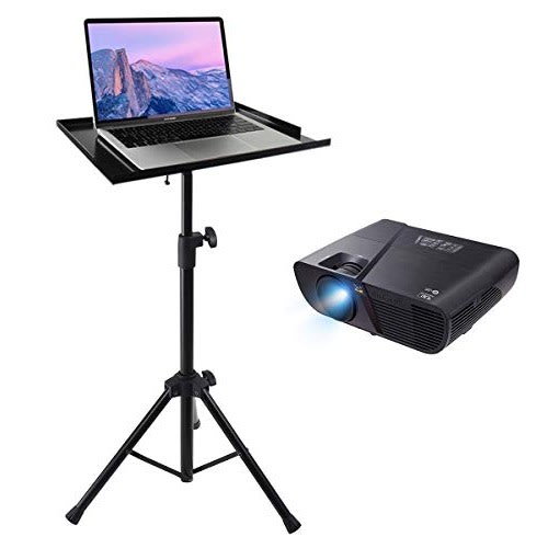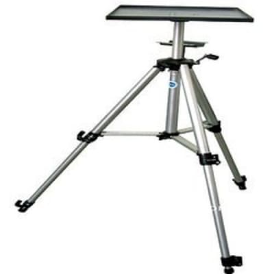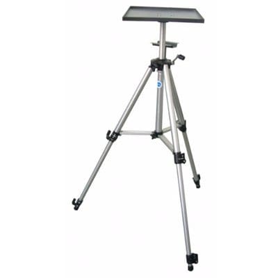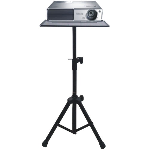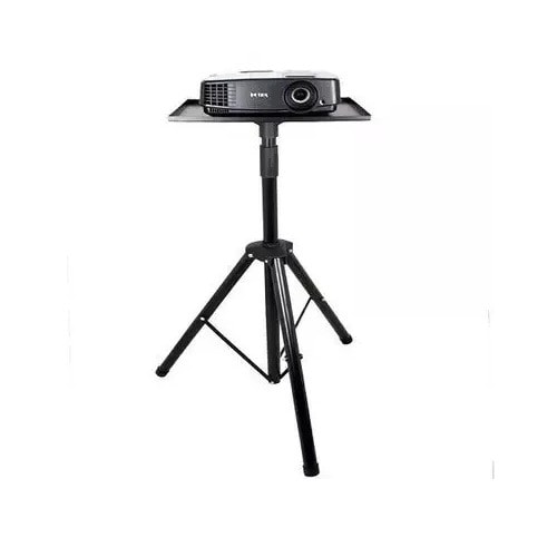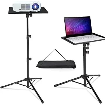 Adjustable Tripod for Projector Heavy- duty tripod bracket can quickly and easily adjust the height from 17.7''to 47.2''.Tray adjustment of 300o.The tray has raised support lips, and sponge gaskets and elastic bands to protect electronic equipment. Clip-type knobs and elastic bands hold the shelf and tray in place.