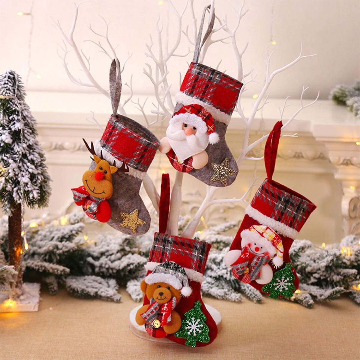 Buy 3D Small Plaid Christmas Stocking Bear Doll Christmas Tree Pendant for Christmas Holiday Party Fireplace Decoration in Nigeria