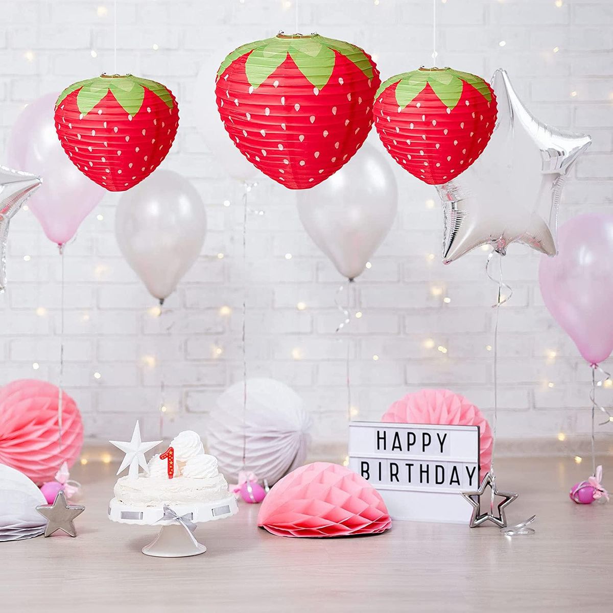 Vivid appearance:These paper lanterns are designed with cute and adorable strawberry shape, decorated with themed colors,look like real strawberries, vivid appearance will win the preference of your neighbors.
