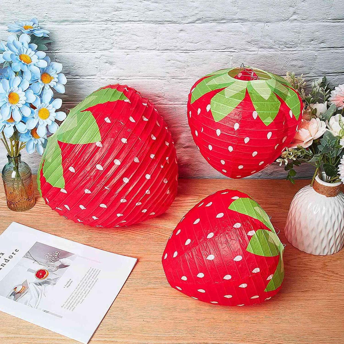 What you get: package will bring you a total of 3 pieces strawberry paper lanterns including 2 pieces 7.87 inches and 1 piece 11.8 inches, sufficient quantity of lantern decorations for you to decor and use, make your party more impressive and charming