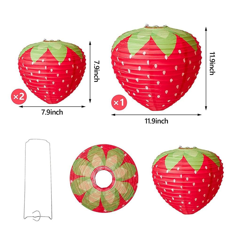 Detailed Information About The Product:What you get: package will bring you a total of 3 pieces strawberry paper lanterns including 2 pieces 7.87 inches and 1 piece 11.8 inches, sufficient quantity of lantern decorations for you to decor and use, make your party more impressive and charming