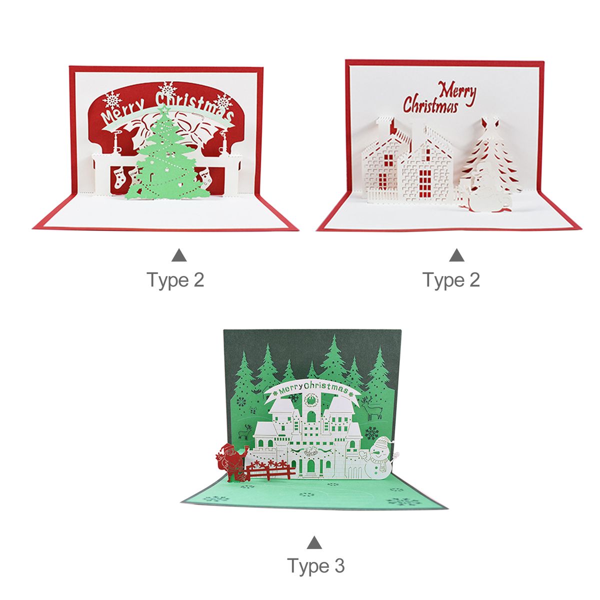 3D Up Christmas Cards Greeting Holiday Cards with Envelope Xmas Decoration Ornament Xmas New Year Holiday Festivals Gift