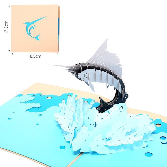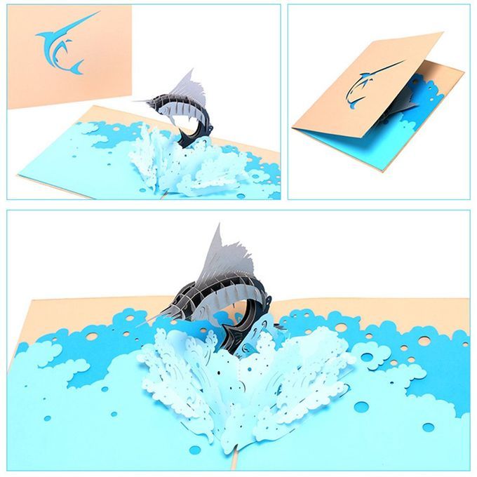 3D Up Sailfish Greeting Ards Envelope Post Ard Birthday-Gold
