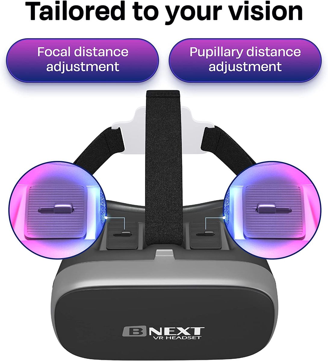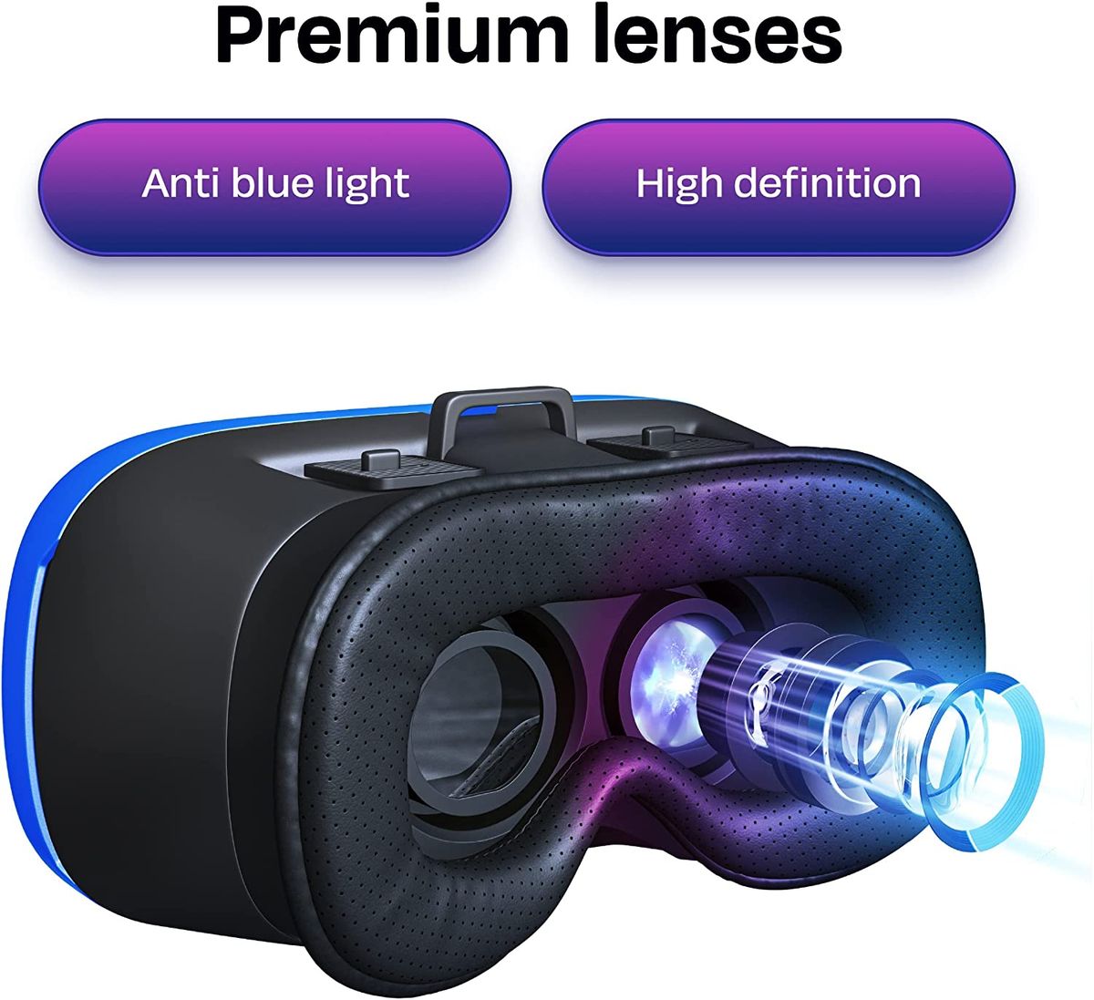 BNext VR Headset Compatible with Android & iPhone - Universal Virtual Reality Goggles for Kids & Adults - Blue 3D VR Glasses for Mobile Viewing & Gaming
