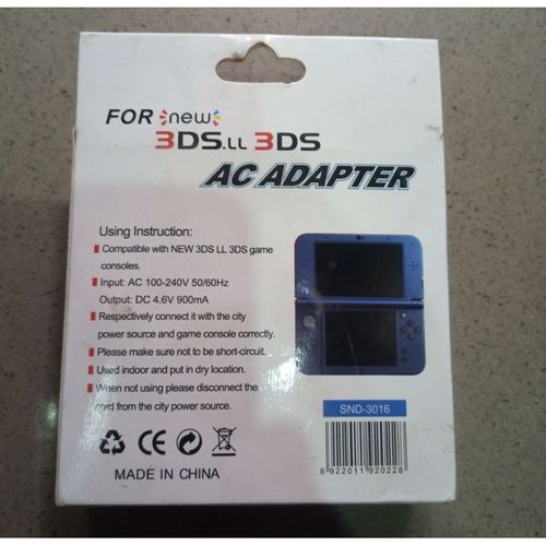 From the Manufacturer This AC adapter is the same as the one included with every nintendo 2ds, nintendo 3ds xl, nintendo 3ds, nintendo dsi xl, and nintendo dsi. it is used to recharge the internal rechargeable battery or it can be used as a direct power source. if your system is not charging properly, we recommend following our troubleshooting steps before deciding upon replacement.featurespower your nintendo 3ds family system from any 120-volt outletallows you to charge the pack even when you playsmall, light weight design allows you to easily pack the ac adapter along with your system for a convenient back-up power sourceworks with the nintendo dsi and nintendo dsi xl systems, and wii remote charging cradleCare Label This AC adapter is the same as the one included with every nintendo 2ds, nintendo 3ds xl, nintendo 3ds, nintendo dsi xl, and nintendo dsi |