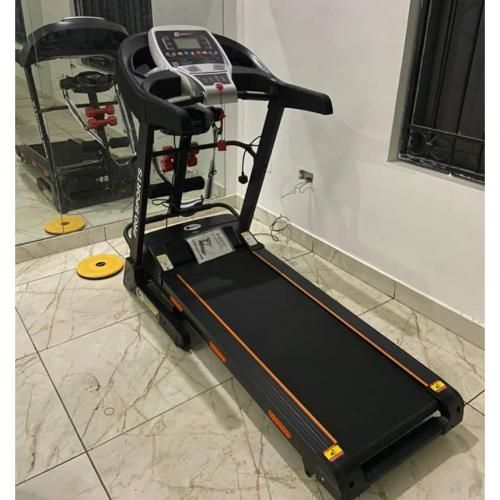 3HP German Treadmill Machine Comes With, 1. Massage, sit-up, 2 dumbells 2.Display Readout: blue LCD .Calories. Heart Rate. Speed.Time.Distance.etc. 3.Motor : 3HP peak power 4.with 2 speakers.amplify USB and SD. MP3 connection.ear phone jack. 5.Speed Range: 0.8-14.8 km/h 6.incline: manual incline 3 levels. 7.Running Surface: 420mm X 1200mm. 8.Carton Size: 1680x750x325 9.Hand-held heart rate.speed&incline shortcut keys 10.99% Pre-assembly in the carton. 11.User Weight Capcity:150kgs 13.two level dual double shock absorption cushioning design. 8-points deck suspension. 14.free assembly package foldable package in the carton. 15.with SON trade mark Product Information...see less,