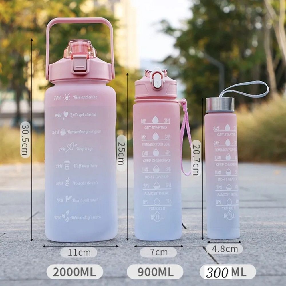 package includes2000ml, 900ml, 300ml1 set gradient color water bottle