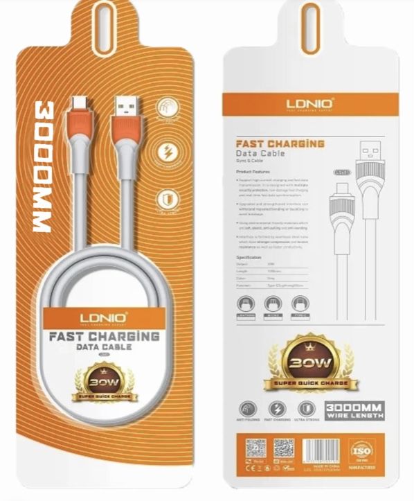 LDNIO PRODUCT - Output 3.4A - 1.2M Cable Length - Fast Charge - Winding Preventing - Battery Protection - Upgrade And Strengthened Interface Can Withstand Repeated Bending Or Bucking To Avoid Breakage - Using Environmental Friendly Materials Which Are Soft And Of Elasticity - Anti-Pulling And Anti-Bending - Compatible With Lightning, Type-C And Android Micro USB Phones Perfectly