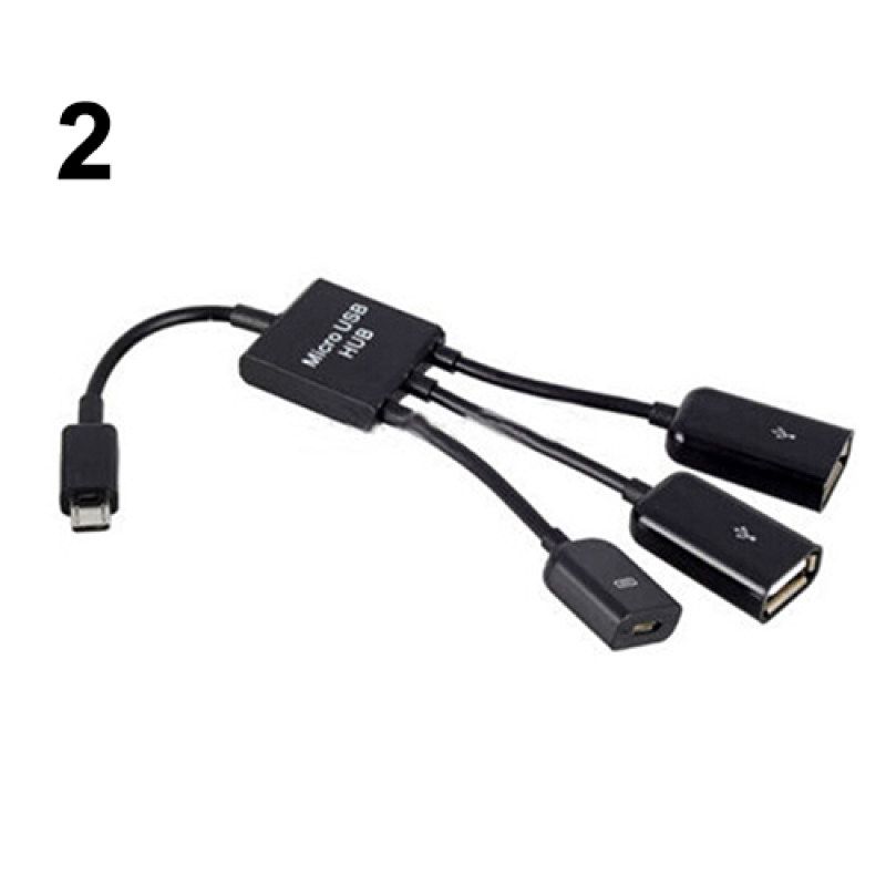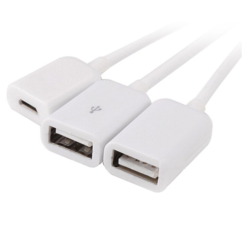 One males micro USB connects to one micro USB female and two USB 2.0 female for external devices.