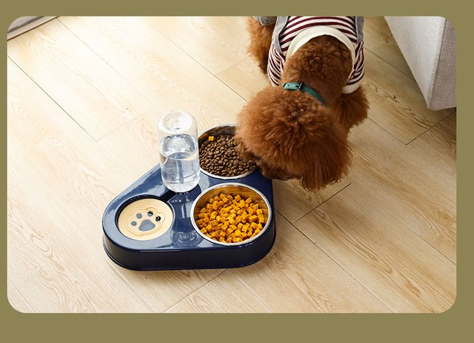 1. Three-in-one cat food water bowl set: Two cat bowls are specially designed for dry and wet separation, allowing multiple pets to eat at the same time