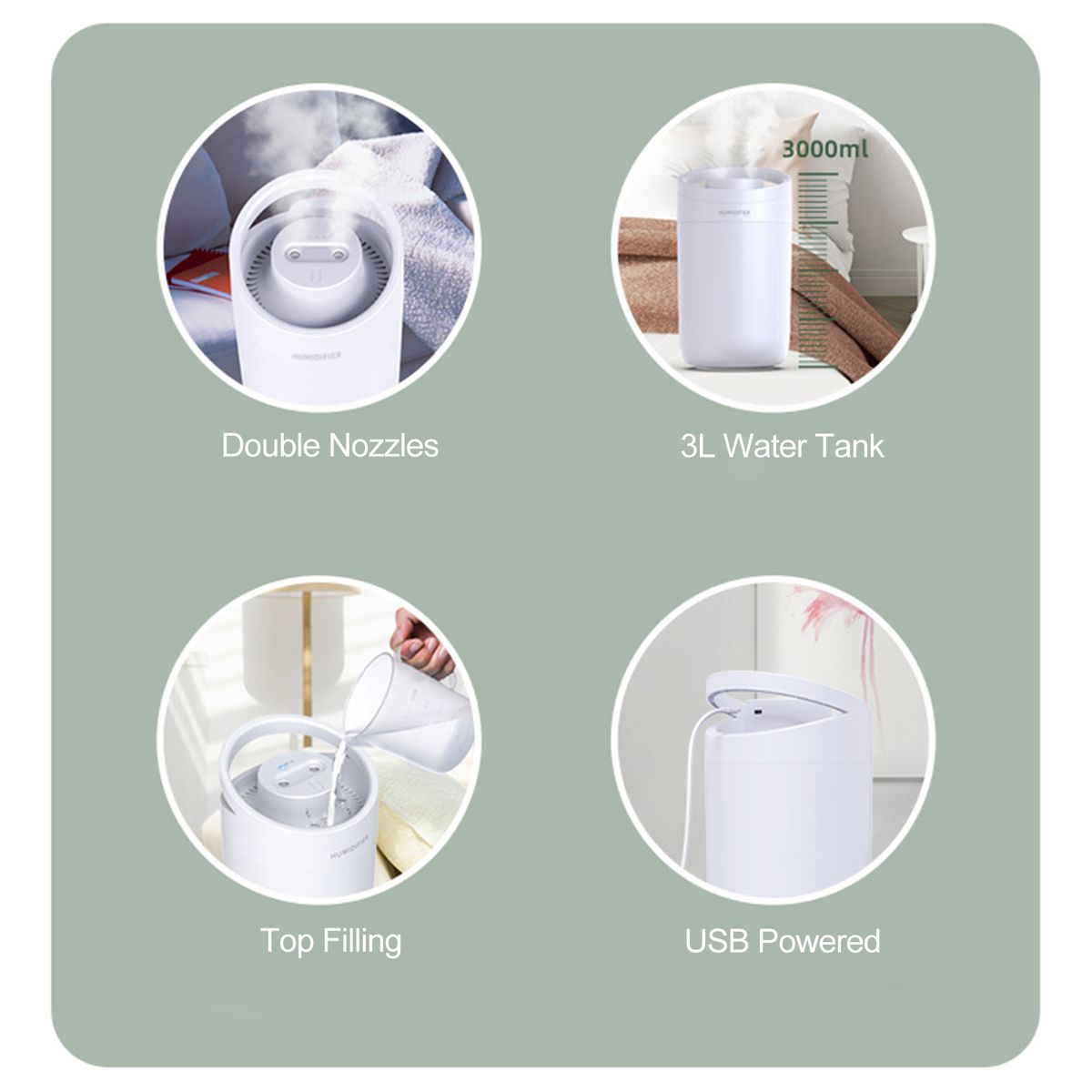 [Double Nozzles]The humidifier has a double spray nozzle which sprays a super large amount of mist for a quick humidify.