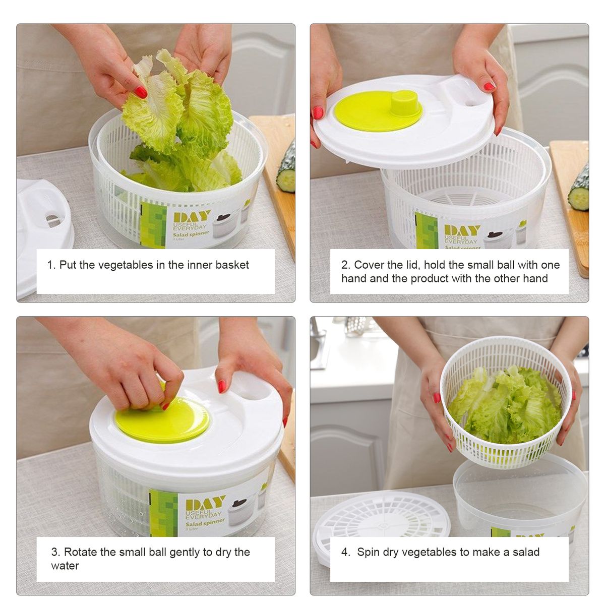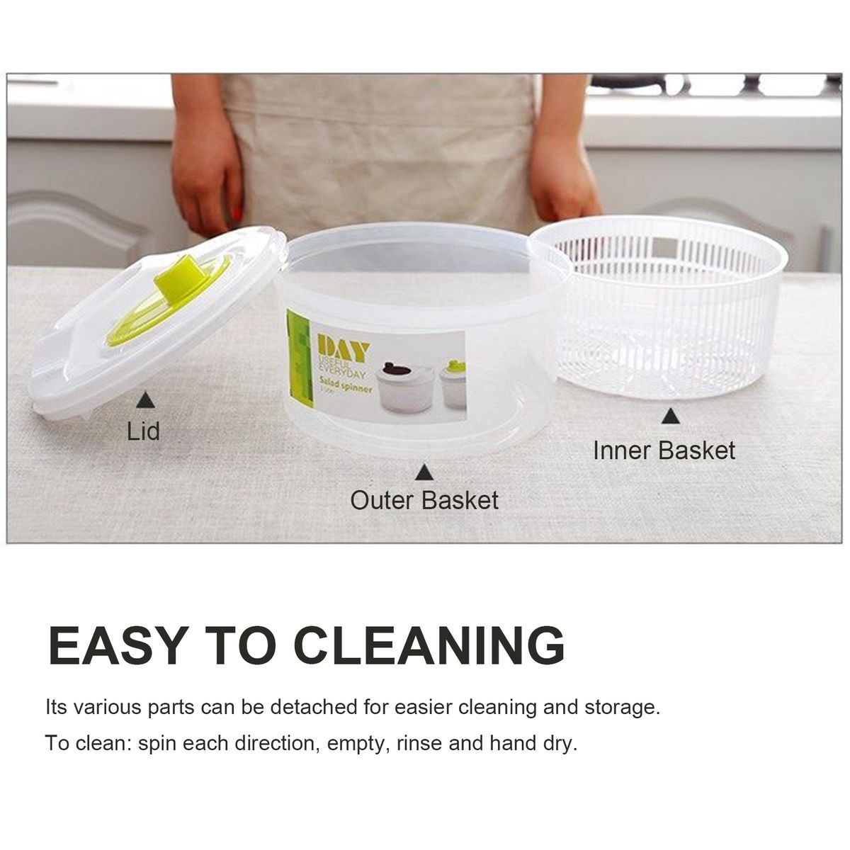 [Large Capacity]Its 3L outer bowl can hold 2-3 salad servings and the basket can be used as a strainer or storage for fruits and vegetables after spinning.