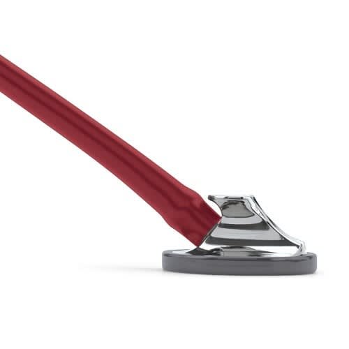 As with the Cardiology III, full adult and pediatric auscultation is available through its dual head chestpiece simply by rotating the central spline to alternate between the two sides. The more compact one piece diaphragm and rim assemblies have further increased acoustic sensitivity. The binaurals have been redesigned with larger diameter ear tubes and a thicker single lumen binaural to transfer sound more effectively. The selector spline is now recessed to allow a flush fit with the binaural tube and now features a visual indicator for easy identification of the operational diaphragm.
