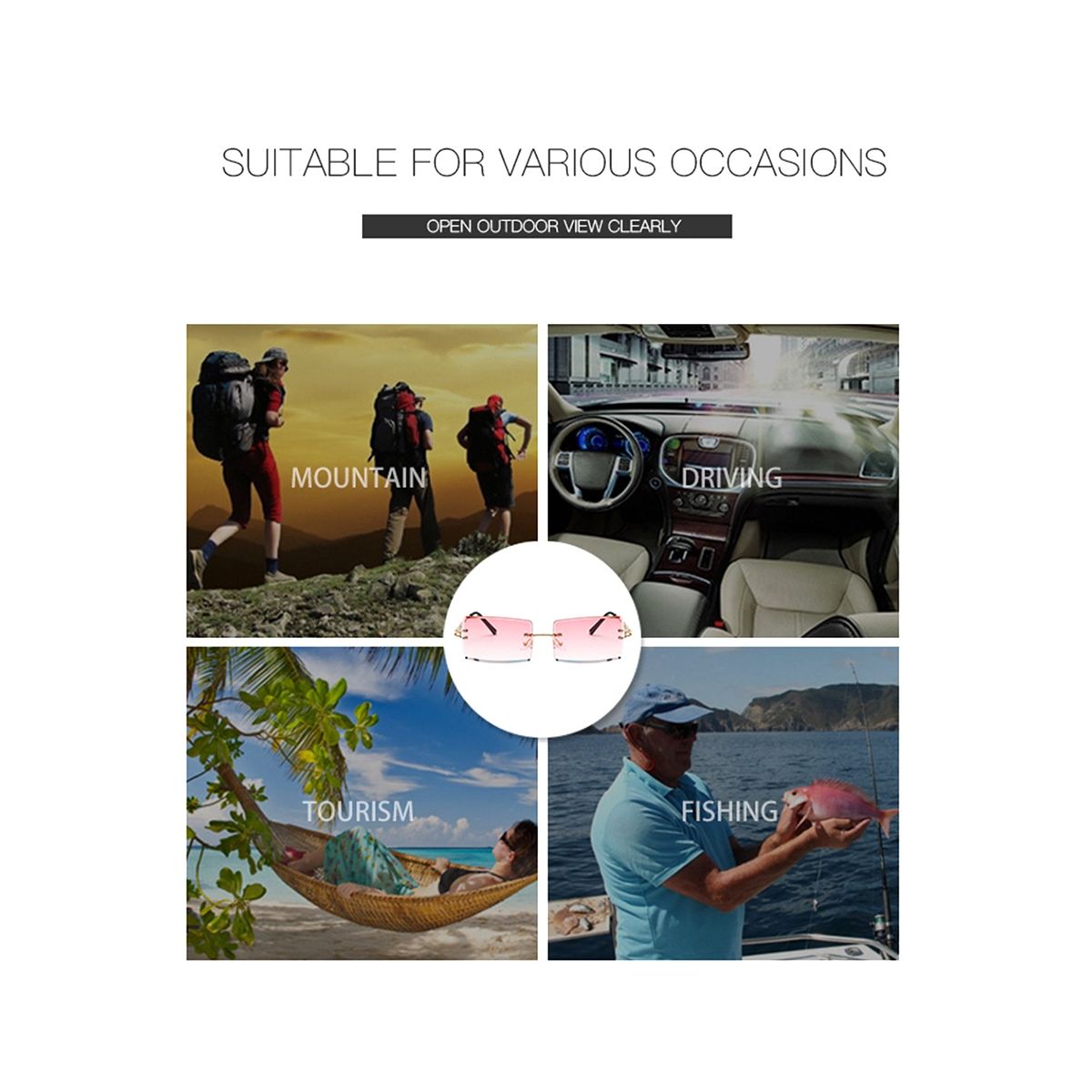 Material fashion rimless sunglasses are composed of resin lens and metal temples skin-friendly lightweight sturdy and wear-resistant not easy to silicone nose pads can bring you a comfortable wearing experience reinforced metal hinges are sturdy and durable making the glasses durable and waterproof broken
