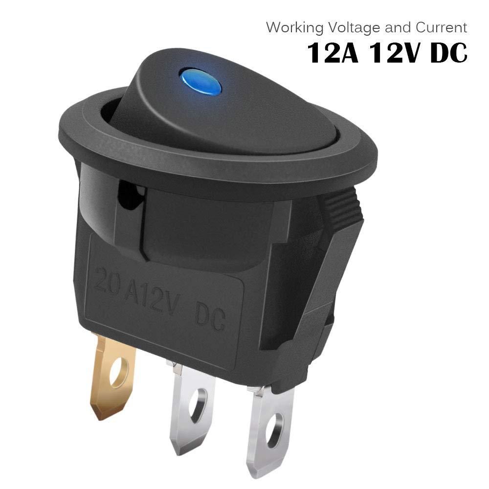 3Pc 12V 20A Rocker Toggle LED Switch Blue Light SPST1.Perfect Design: Designed to connect and disconnect a DC12V 20A electrical circuit at will, SPST: ON-OFF control; 2 pole design (On/Off), 3rd poles with LED to be connected to earth. Fluorescent lamps will be lighted up when the switch is turned on