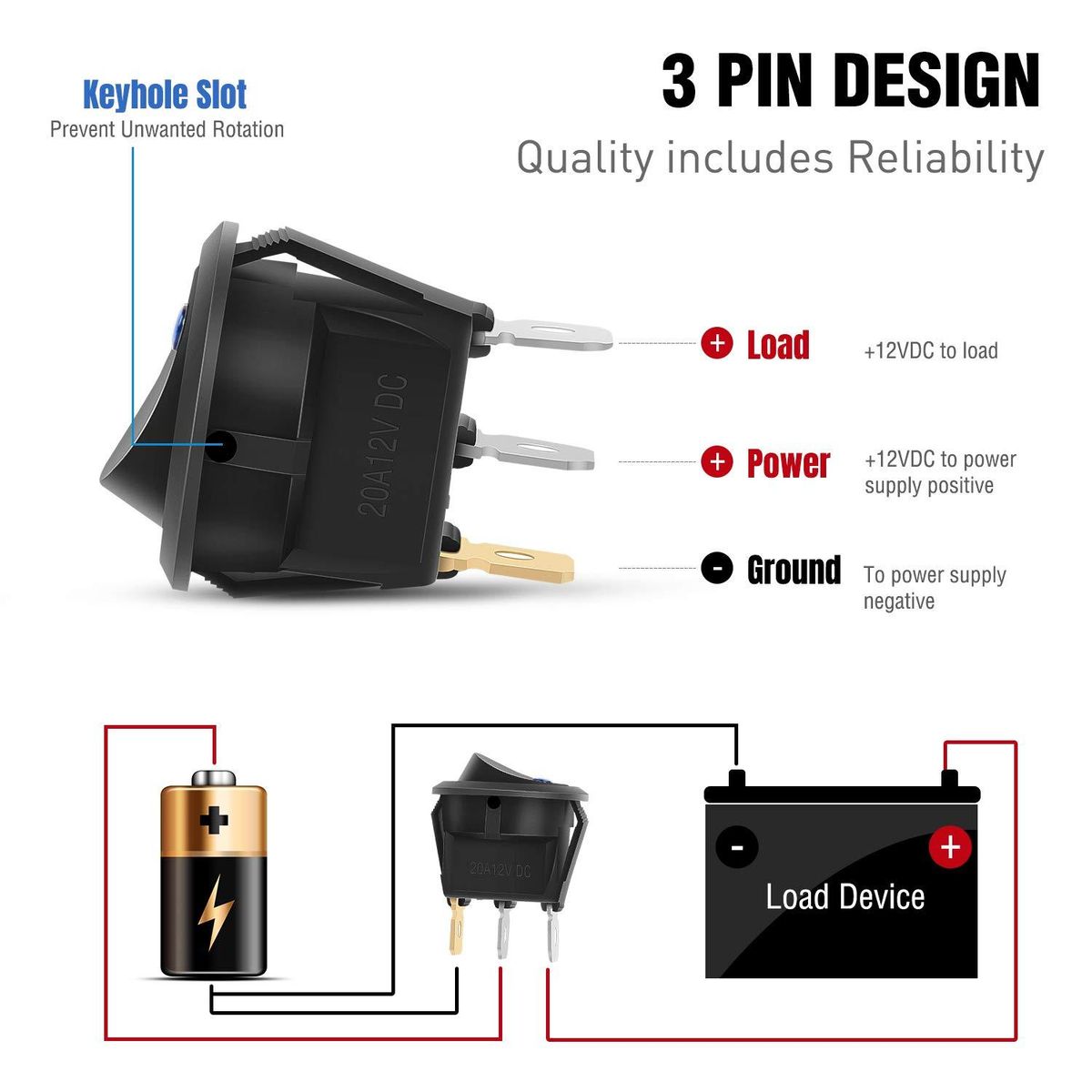 3.Easy Installation: Round on-off switch is easy to install, which is just direct setup, and no additional work required, our switch comes with a keyhole slot to prevent unwanted rotation