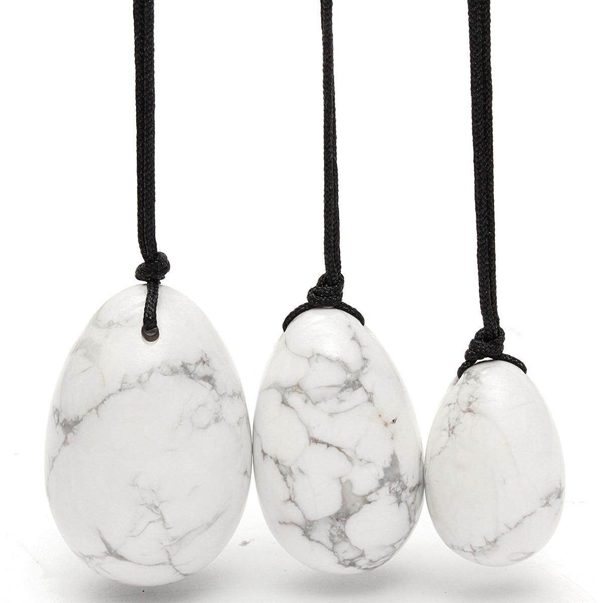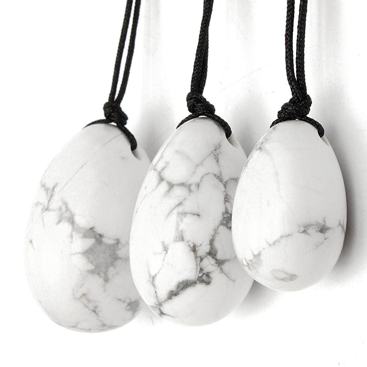 3 Pcs x lwhite howlite Crystal Eggs With Rope (Big/Medium/Small Each one)