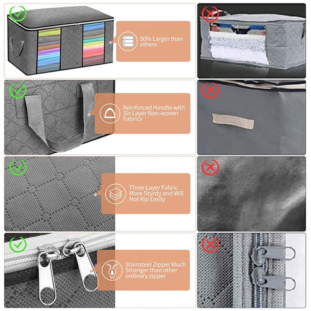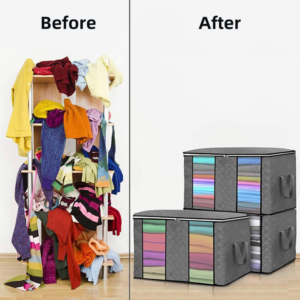 As time goes by, more and more stuff are going to fill up your closet and without enough space to store them. In this case, you need these large-capacity storage container to organize your stuff, ideal for clothing, sweaters, coats, jackets, toys, comforters, blankets, pillow ,case, extra sheet sets and linens!