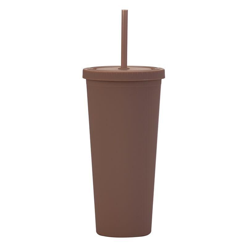 Buy 3pcs 700ml Reusable Straw Tumbler with Lid Double-Walled Plastic Matte Handy Cup in Nigeria