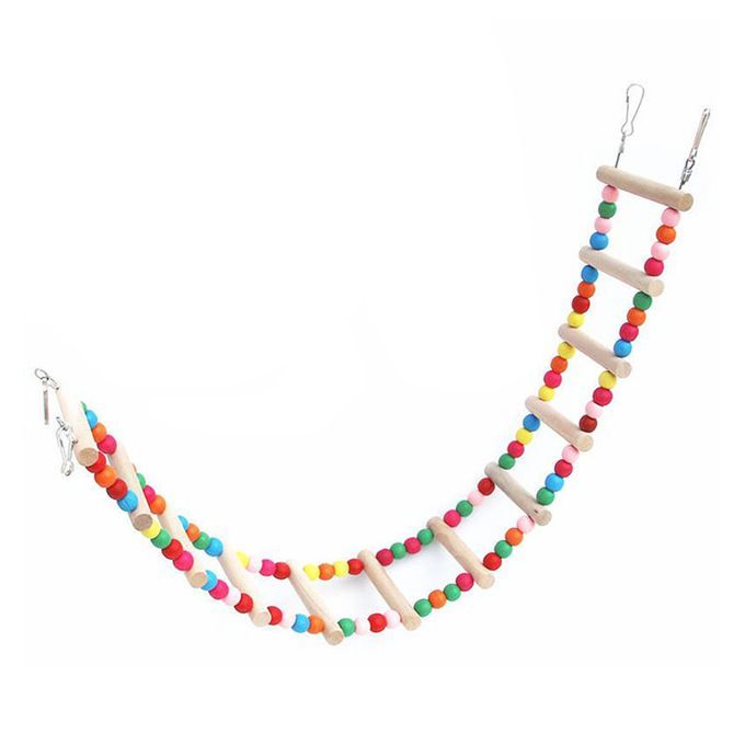 Natural wooden with colorful bead, release your hamster's nature of climbing and chewing, also it's also good for its health. With 4 hooks can be arbitrarily hung on the cage, can be bent.
