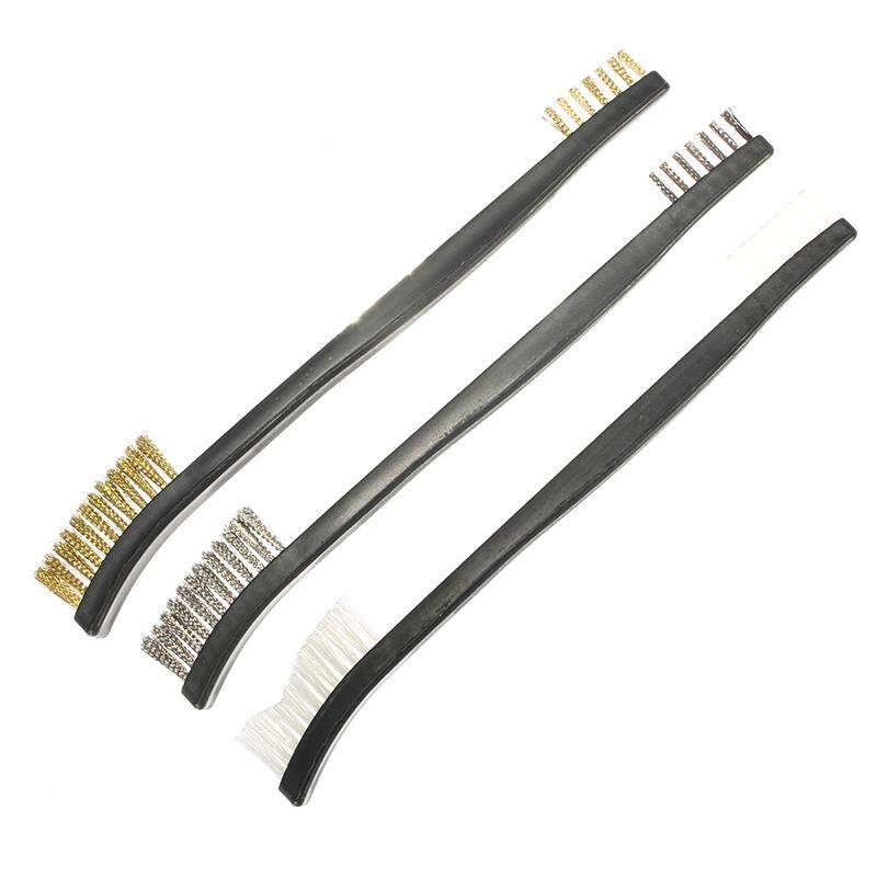 - Includes 3 brushes, 3 types of double-ended brushes: Brass, Steel, Nylon.