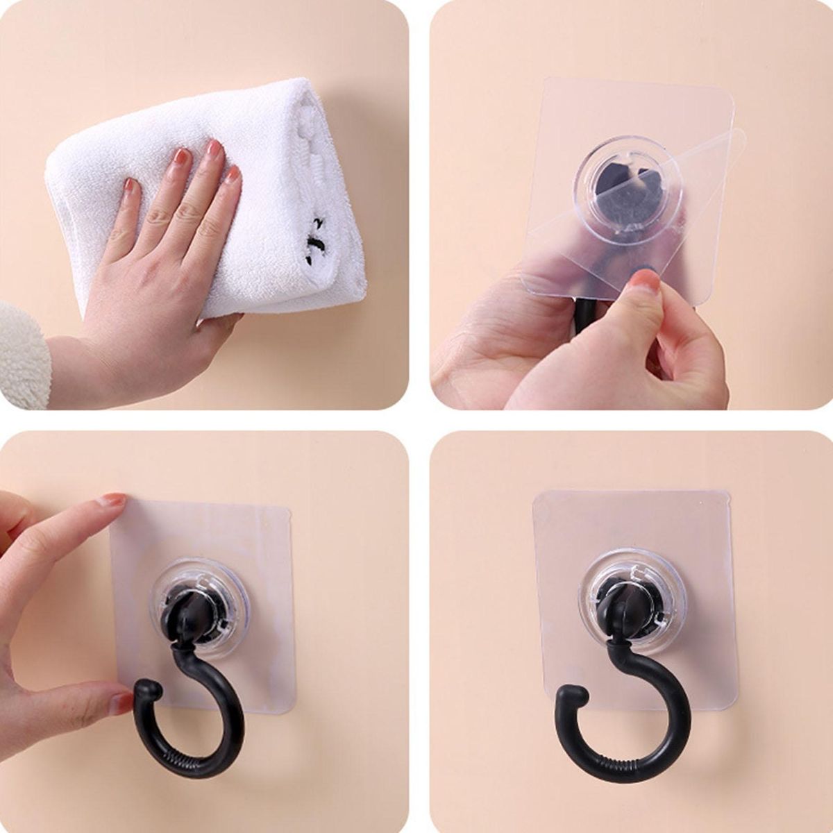 Designed with simple transparent appearance, this wall hook easily blends in various household styles and is solid enough to hold coat, scarf, hat, handbag, towel, bath ball, foldable umbrella, kitchen supplies and so on to effectively save space and keep your home tidy.