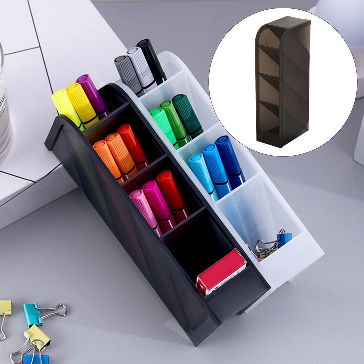 EASY ORGANIZATION: Our desk organizer is convenient for storing rting small items such as pencils, markers, , Easily to sort and organize your all items, spacesaving.