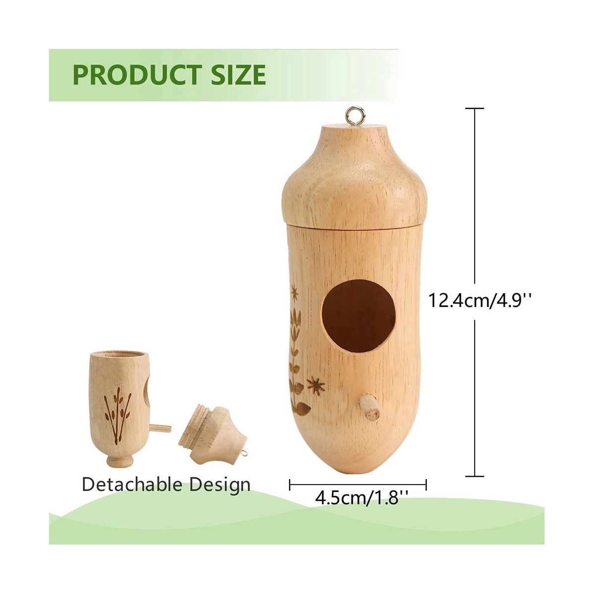 [Perfect Gift] size is about 5X2X2 inches. The length of the hanging rope is about 45cm, After hanging the birdhouse, watch the birds nesting and foraging with your family. The best gift for nature lovers, bird lovers and family.