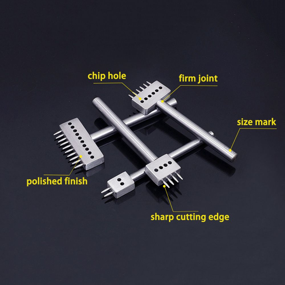 3Pcs DIY Leathercraft Tools 4/5/6mm Spacing Leather Hole Punches 2+4+6 Prongs Stitching Punch Hollow DrillingTools Set for Leather Belt