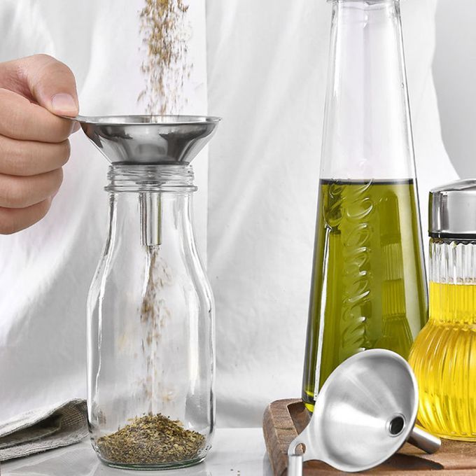 Highly resistant to rusting, scratching, breaking or bending. Each funnel has a perfectly narrow stem, allows liquids flow through the tube quickly and easily, helps avoid mess and spills when infusing oils, jams, spirits, etc.