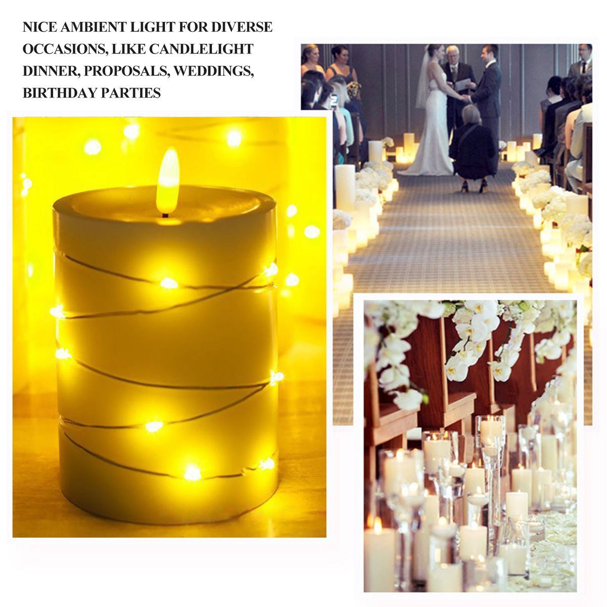 Nice ambient light for diverse occasions, like candlelight dinner, proposals, weddings, birthday parties and more.