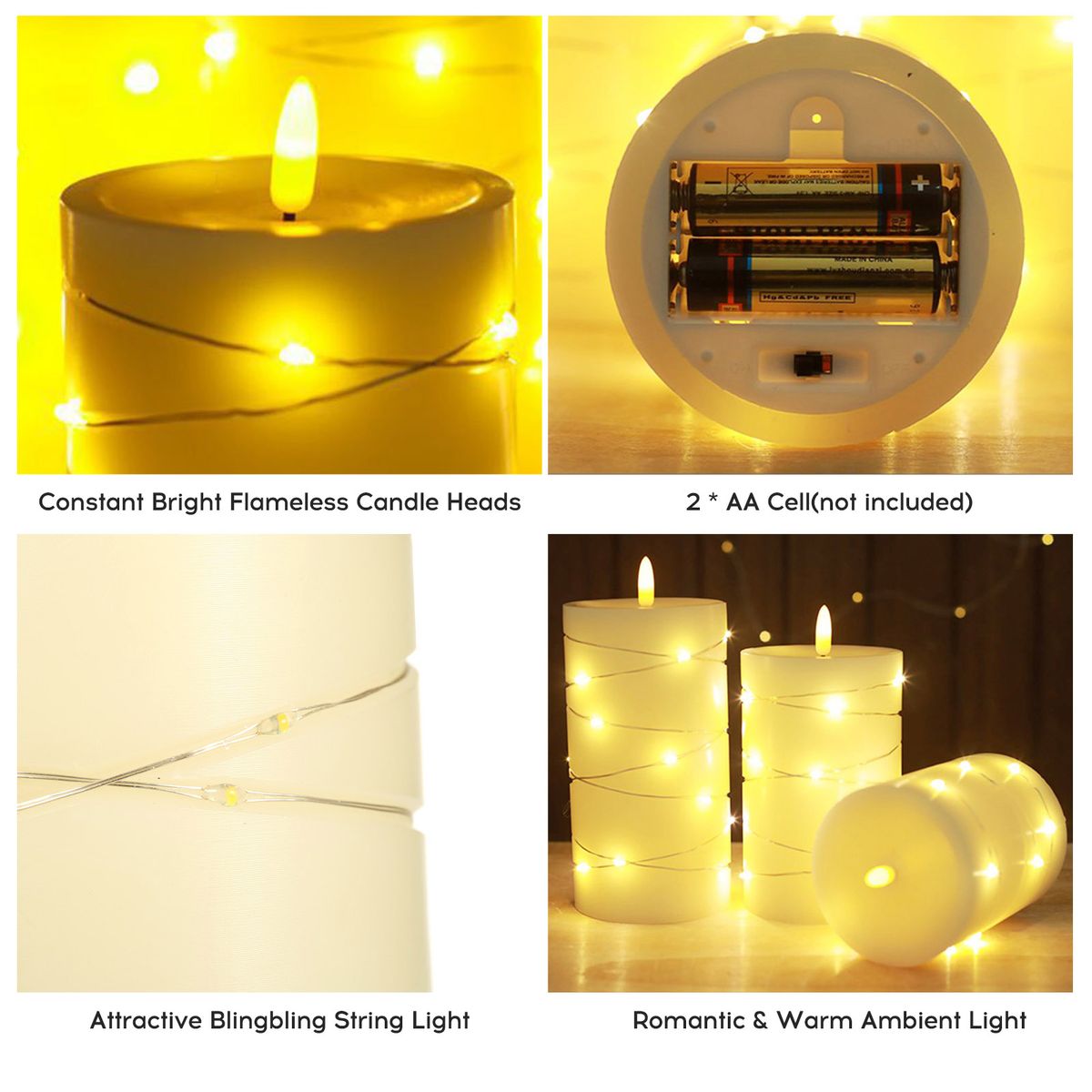 3pcs LEDs flameless candle lights made of superb paraffin wax , gorgeous candle effect creating a vivid visual enjoyment.
