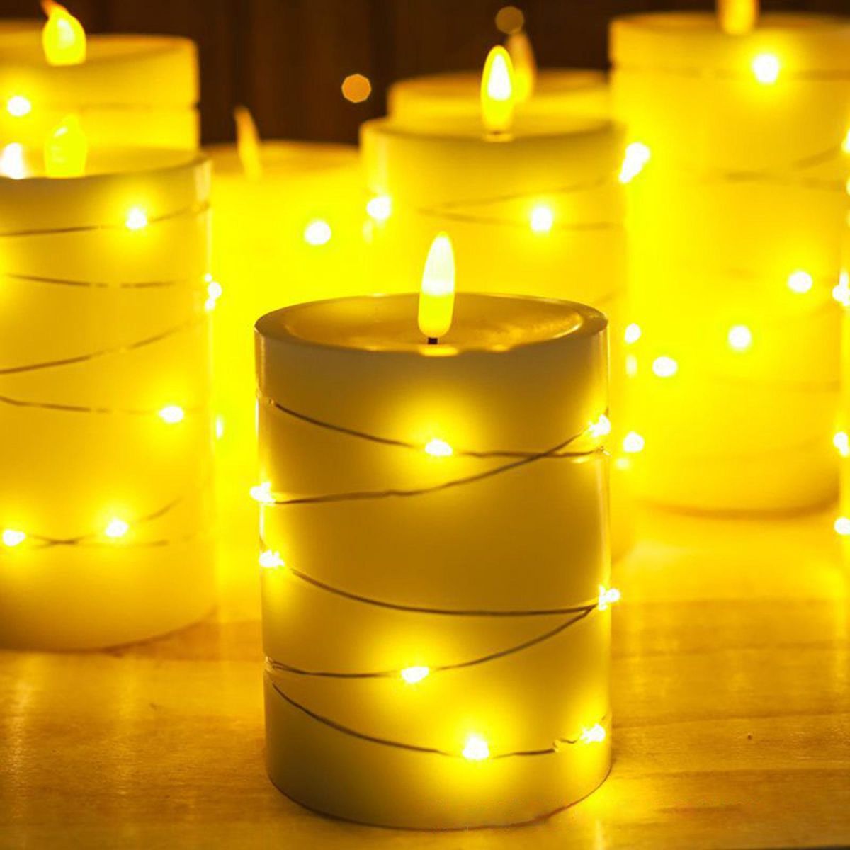 Buy 3PCS Flameless Candle Lights with Twisted String Lights Kit with Controller Constant Bright Heads Lighting Effect/ Constant Bright String Light 5 Levels Dimmable Brightness Adjustable 2H&4H&6H&8H 4 Levels Timer 2 * AA Cell Operated for Indoor Outdoor Dinn in Nigeria