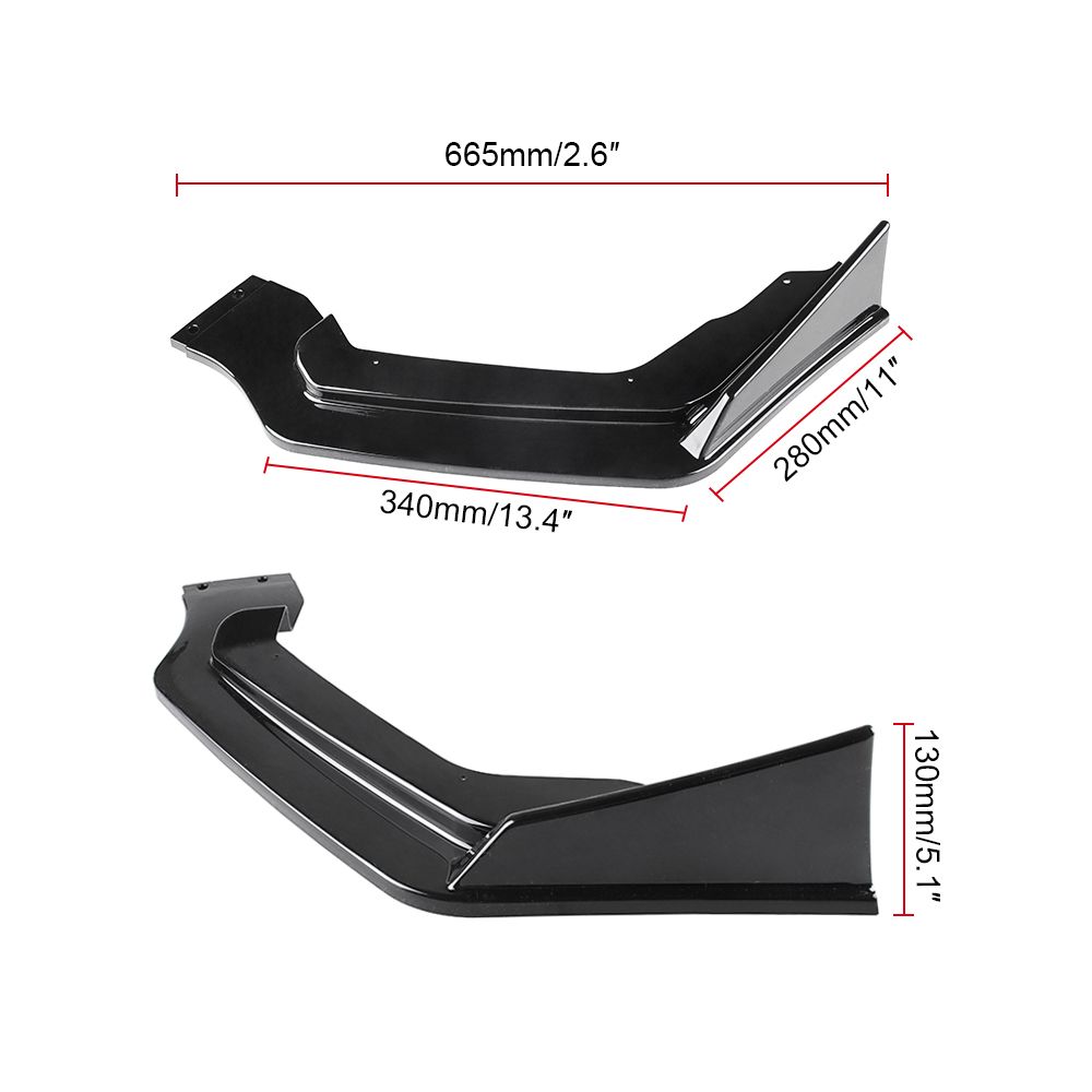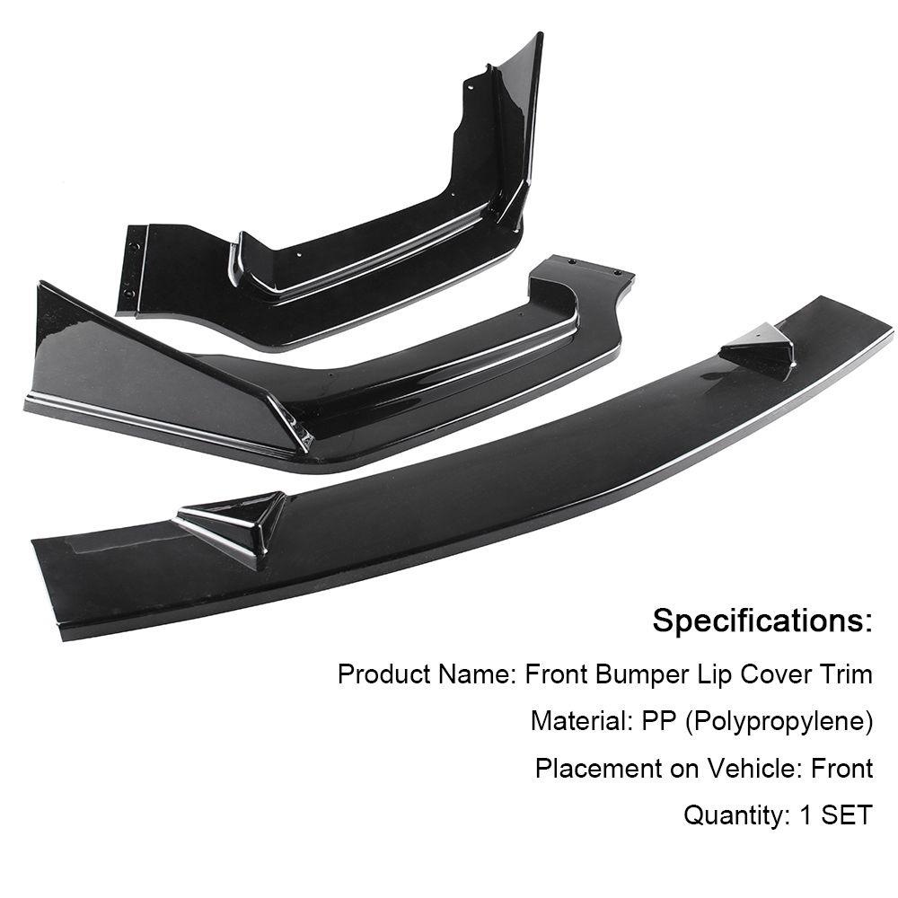 1 * 3pcs Front Bumper Bright Black Pp Chin Lip Spoiler Trim For