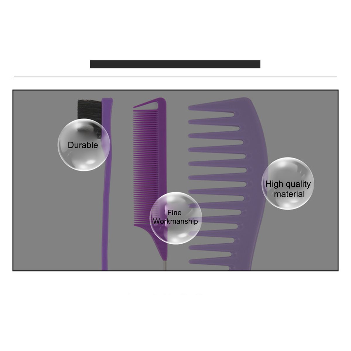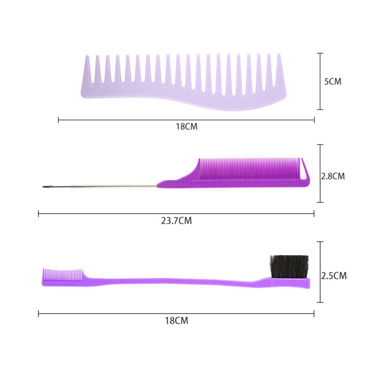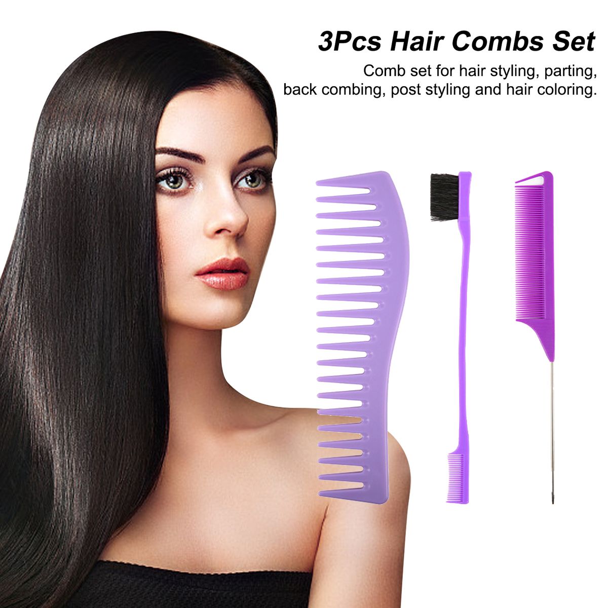 This 3 pieces hair comb set includes wide tooth comb, rat tail comb and double sided edge control hair brush comb.