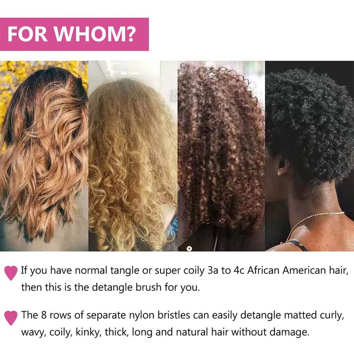 The flexible comb head, with 8 rows of independent nylon bristles, can easily peel off the messy curly, curly, thick, long, natural hair without damage.